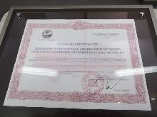 昨年に贈呈した緊急車輌を送る為にチャリティーコンサートを開催していただいた『山梨県商工会青年部連合会』様へ、カンボジア王国庶務大臣から感謝状が届ましたので贈呈式です。